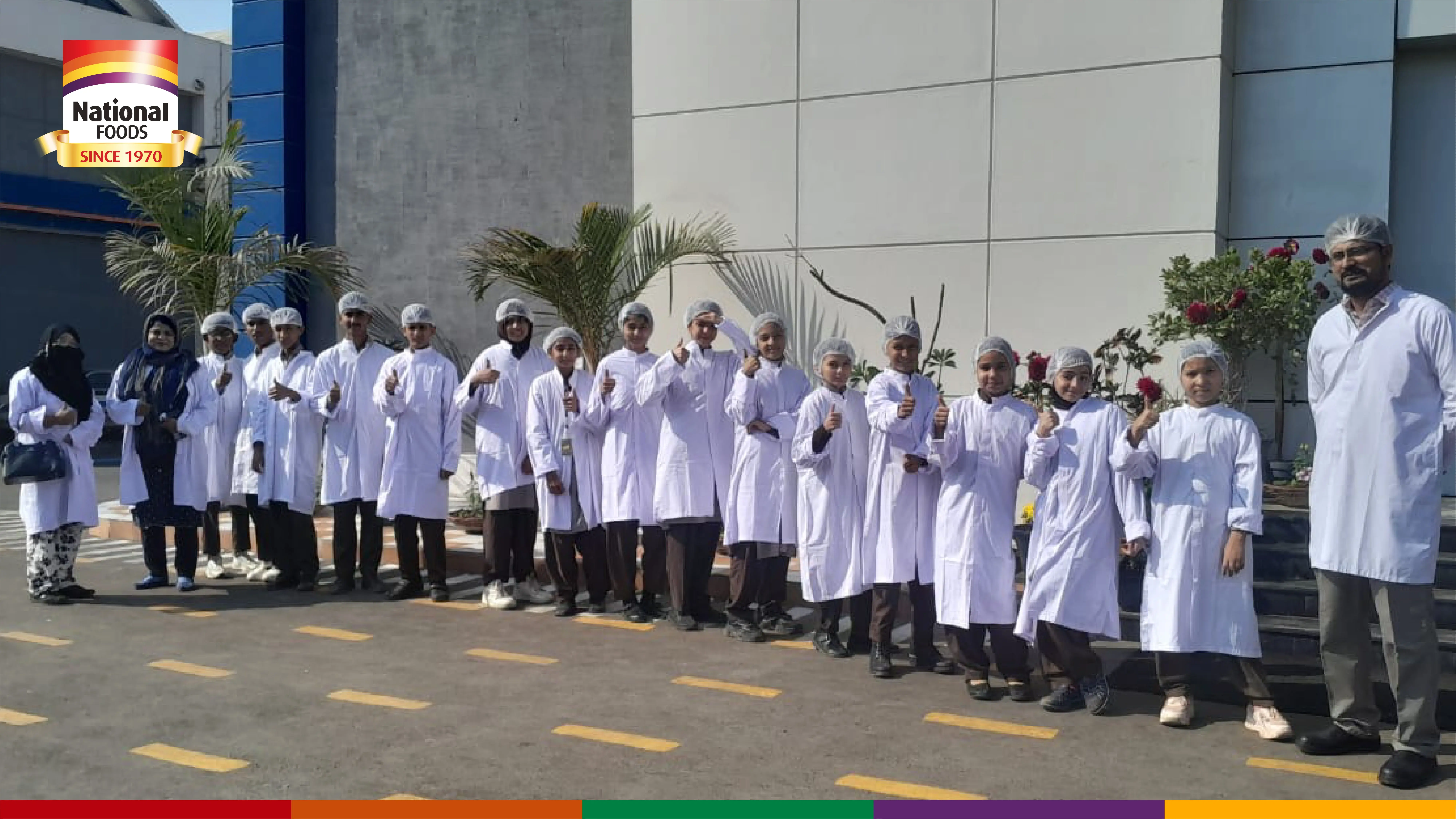 National Foods' Port Qasim plant hosted a group of bright young students (ages 0 to 13) from Rahnuma Public School for an interactive learning experience. The visit gave them a glimpse into NFL's rich history and diverse product range, offering valuable insights into food safety, processing, preservation, and packaging—key elements that have made National Foods a trusted household name for generations.